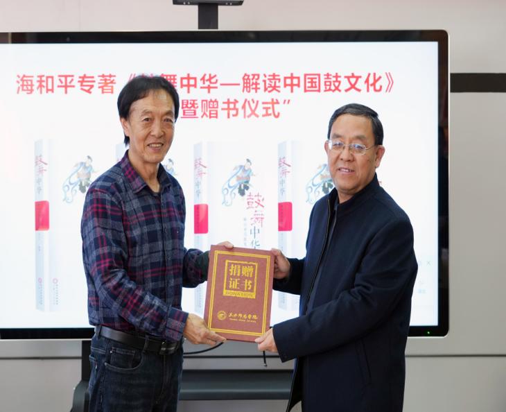 据悉,《鼓舞中华——解读中国鼓文化》不仅是海和平先生学术生涯中的精品力作,也是音乐舞蹈学院科研平台建设的重要成果。研讨会暨赠书仪式上,左国防和海和平分别向天水市图书馆、秦州区图书馆、学校逸夫图书馆和音乐舞蹈学院资料室捐赠了《鼓舞中华——解读中国鼓文化》一书。