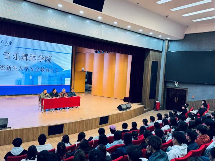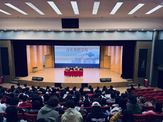 为切实筑牢新生安全防线,引导音乐舞蹈学子系好入学“安全第一粒扣子”,10月9日,天水师范大学音乐舞蹈学院在音乐厅召开了2025级新生入学安全教育大会。会议由党总支副书记、副院长陈海主持,学院领导班子成员和25级全体新生共同参会。