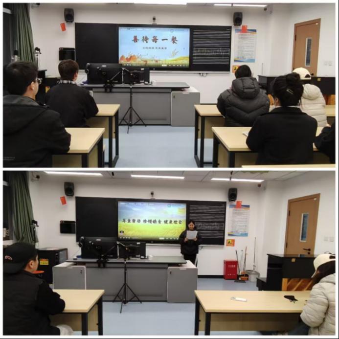 随后,全体参赛同学一同观看了《中国粮食》《一粒种子改变世界》等主题影片。影片以生动的镜头语言,从粮食种植的艰辛历程、袁隆平院士等科研工作者攻克杂交水稻难题的坚守,到全球饥饿人口现状的真实呈现,全方位展现了粮食从田间到餐桌的来之不易,也揭示了“保障粮食安全,端牢中国饭碗”的战略意义。观影结束后,学生代表进行了发言,他们结合自身的感悟,呼吁同学们从自身做起,从小事做起,积极践行“光盘行动”。