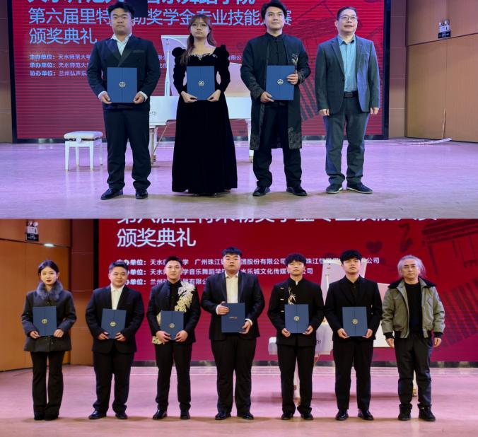 晚会尾声,全体获奖选手与领导嘉宾一同合影留念,定格这一荣耀时刻。至此,天水师范大学音乐舞蹈学院第六届“里特米勒”奖学金专业技能大赛颁奖晚会圆满落幕。